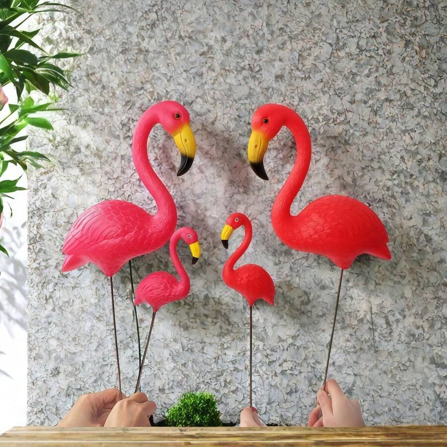 2PCS Pink Small Flamingo Garden Stake Lawn Yard Ornament Flamingo Garden Statue Red Flamingo Garden Yard Decor For Sidewalks Tropical Party