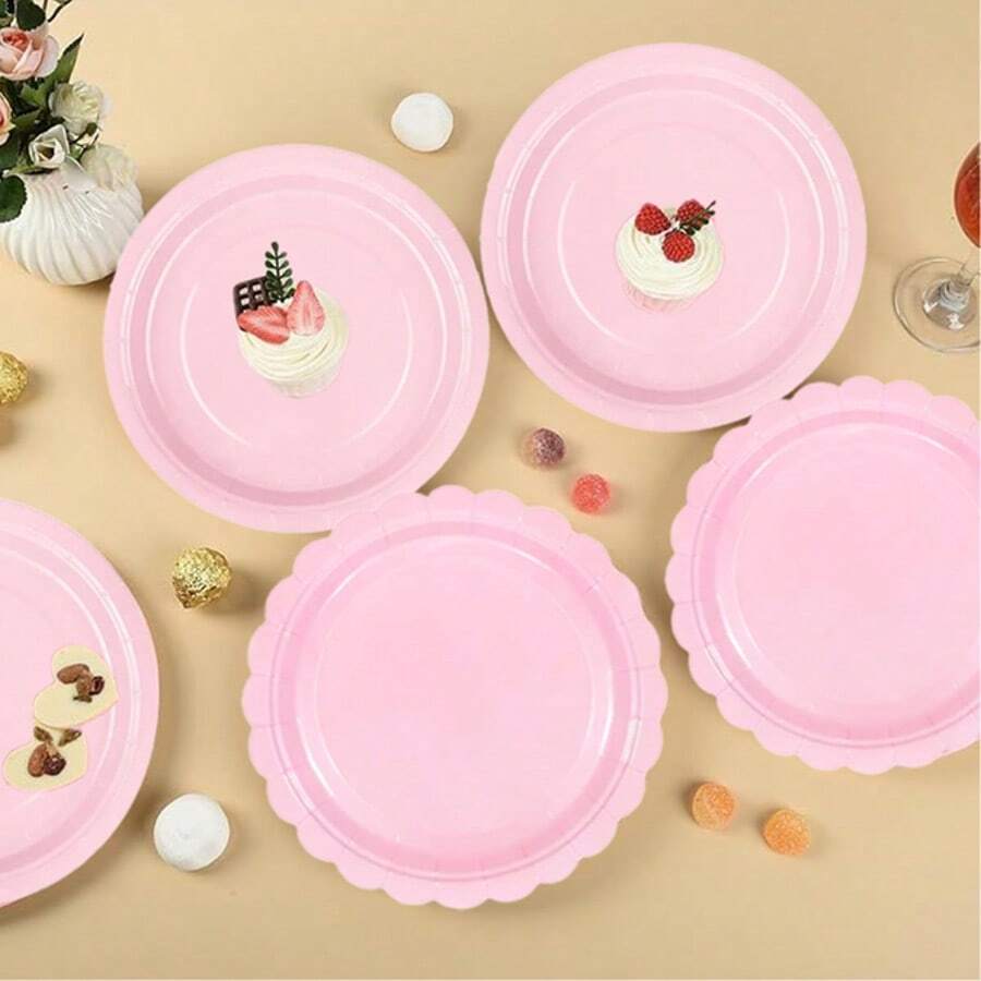 10pcs Peach Pink Solid Color Party Paper Plates, Round/Scalloped Disposable Plates, 7 Inch/9 Inch Peach Pink Solid Color Party Plates To Enhance Party Atmosphere, Suitable For Birthday Parties, Picnics, Family Gatherings, New Year Celebrations, Valentine's Day