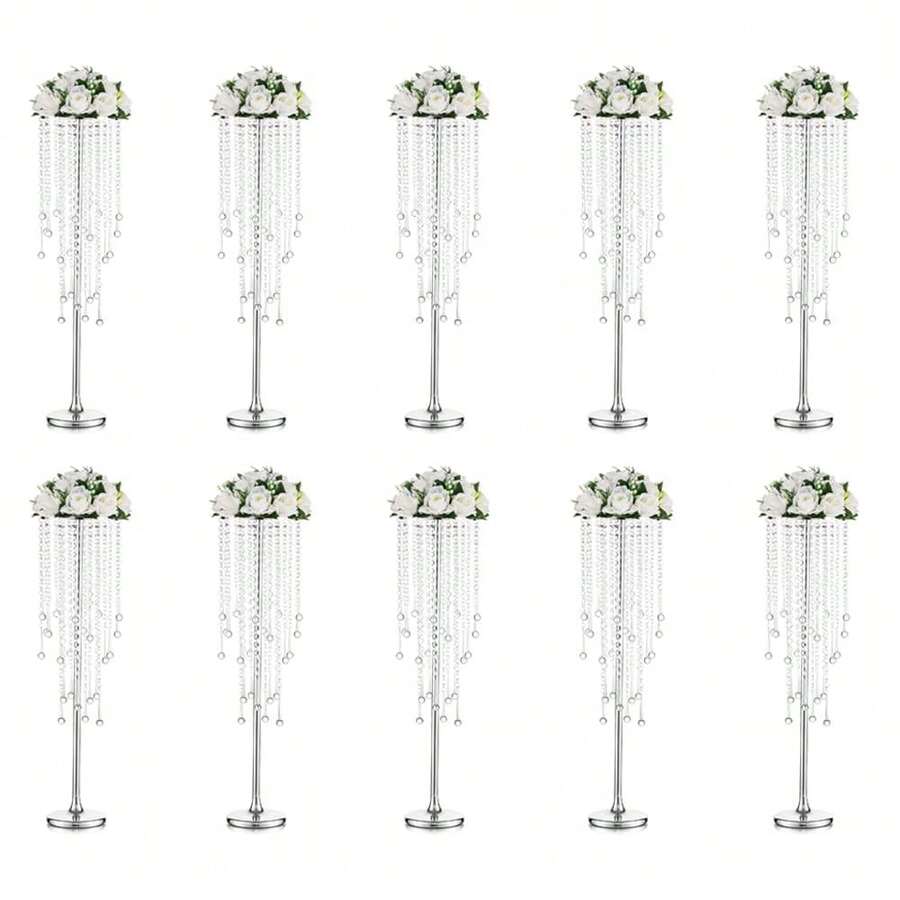 2 Pcs/10 Pcs Vase Tabletop Decor - Metal Flower Stands With Hanging Crystal Lamps For Wedding, Tall Vases For Dining Table, Wedding Party & Home Decor