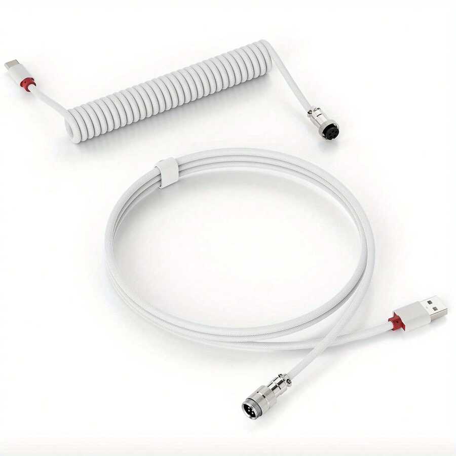 White 2-section Coiled Mechanical Keyboard Charging Cable White 1.8m/70inch