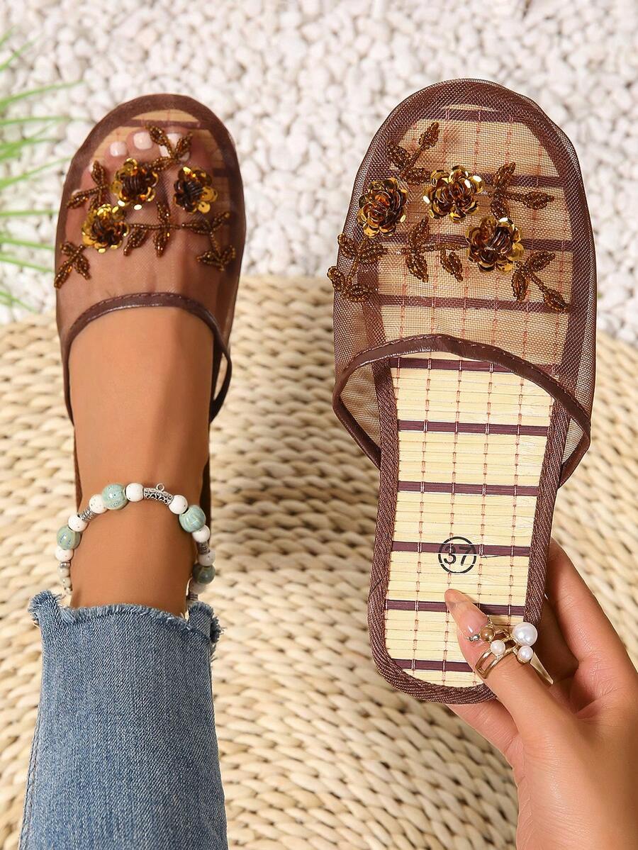 2024 New Fashion Handmade Pearl Decorated In/Outdoor Breathable Mesh Slippers