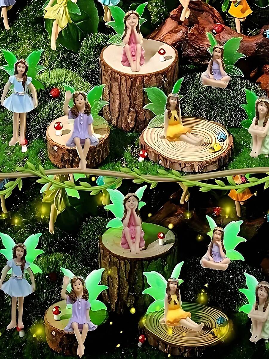 2pcs-6styles Fairy Garden Accessories, Mini Fluorescent Wings Flower Fairy Garden Model, Resin Fairy Character Pot Decoration, Cute Whispering Fairy Garden Resin Crafts Tabletop Ornaments, Small Fairy Figurines For Fairy Garden,