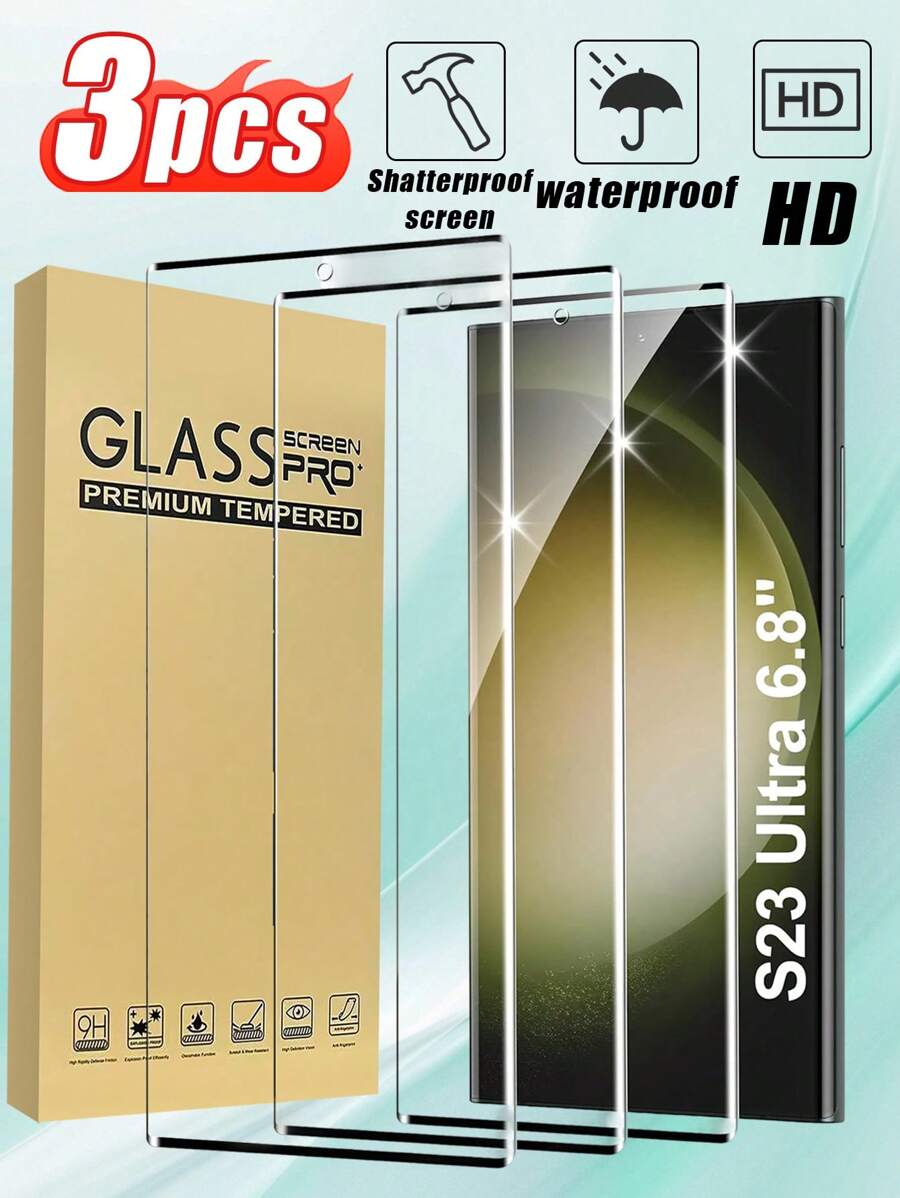 3pcs Tempered Glass Screen Protector Compatible With Samsung S23 Ultra, Fingerprint Unlock, Waterproof, Anti-Fingerprint, Anti-Scratch, Anti-Shock, Suitable Compatible With Samsung Galaxy S21/S21 Plus/S22/S22 Plus/S23/S23 Plus/S24/S24 Plus/S24 Ultra/S25/S25 Plus/S25 Ultra/S26 Ultra/S26/S26 Plus