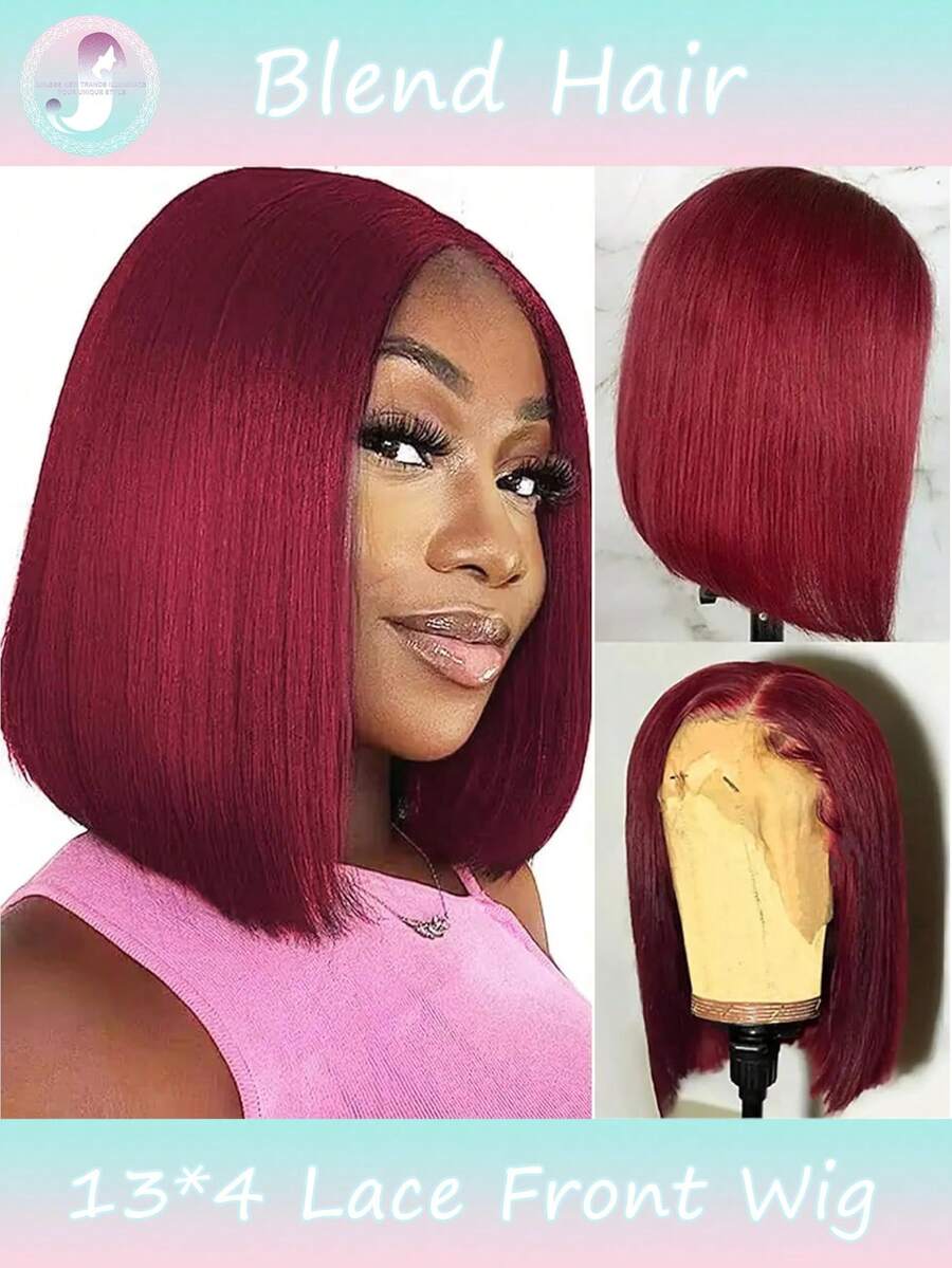 99J Burgundy Bob Human Blended Hair Wig 180 Density 13x4 Transparent Straight Lace Front Wigs Bob Wig Pre Plucked With Baby Hair Natural Hairline Glueless Wig Wine Red 8-16 Inch(Blended Wigs-A Mix Of Human Blended Hair And Synthetic)Wigs Human Blended Hair/Women's Human Blended Hair Wig/Human Blended Hair Lace Front Wigs/Wigs Glueless/Bleached Knots/Lace Wig/Costume Party/Halloween
