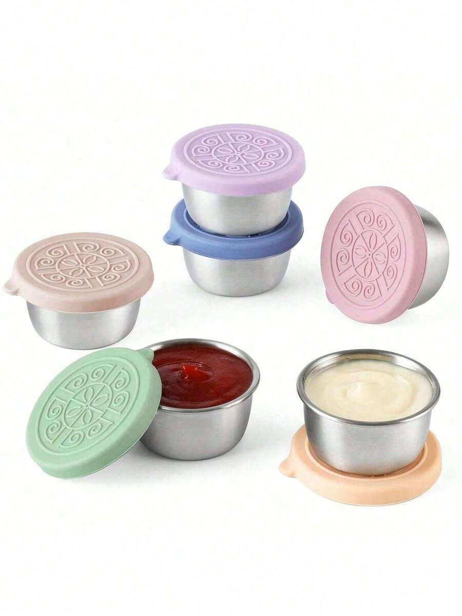 4 Packs Salad Dressing To Go Containers, 1.6 Oz Small Stainless Steel Sauce Cups With Leakproof Silicone Lids, For Lunch Boxes, Picnics And Travel