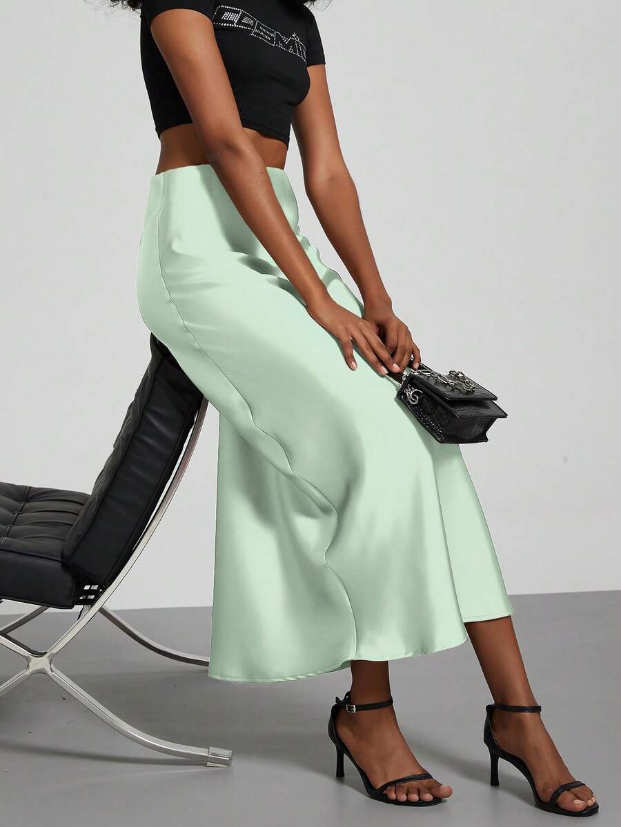 Women's Fashion Elastic Satin Feeling Satin Maxi Skirt, Suitable For All Seasons