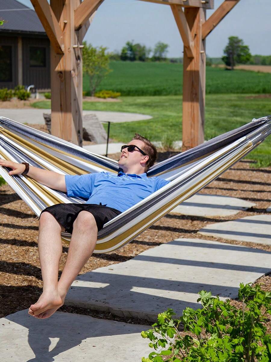 Portable Camping Hammock, Double Hanging Hammock, Heavy Duty Hammock, Outdoor Hammock, Patio Canvas Hammock, Sturdy And Comfortable Fabric Hammock With Tree Straps, Load-Bearing Up To 440 Lbs, Comes With Travel Bag, Suitable For Outdoor/Indoor Patio/Backyard.