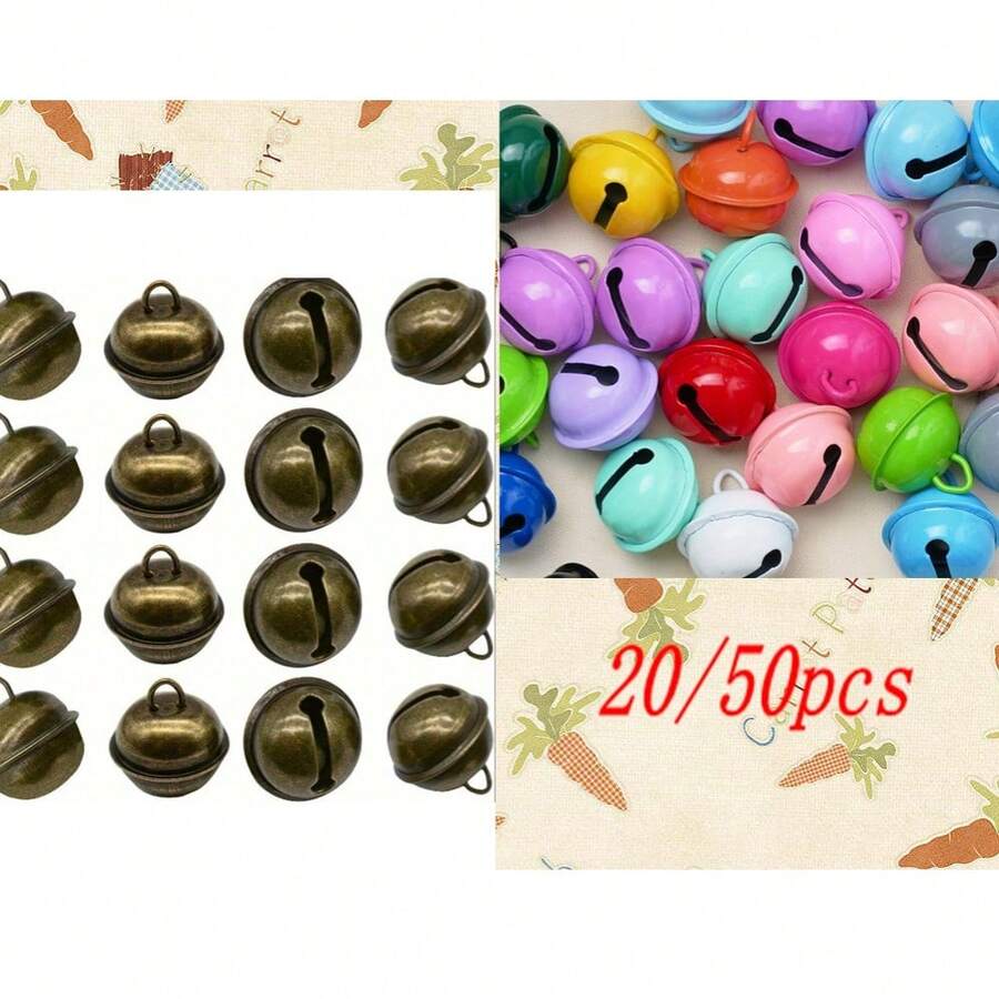 20/50 Pieces - 1-Inch Electroplated Antique Bronze/Candy Color Christmas Bells, One-Shape Bells, Iron Pet Bells Collar Accessories, DIY Decorations, Pet Cat And Dog Pendant Christmas Tree Handmade Ornaments, Candy Color Bells DIY Jewelry Key Chain