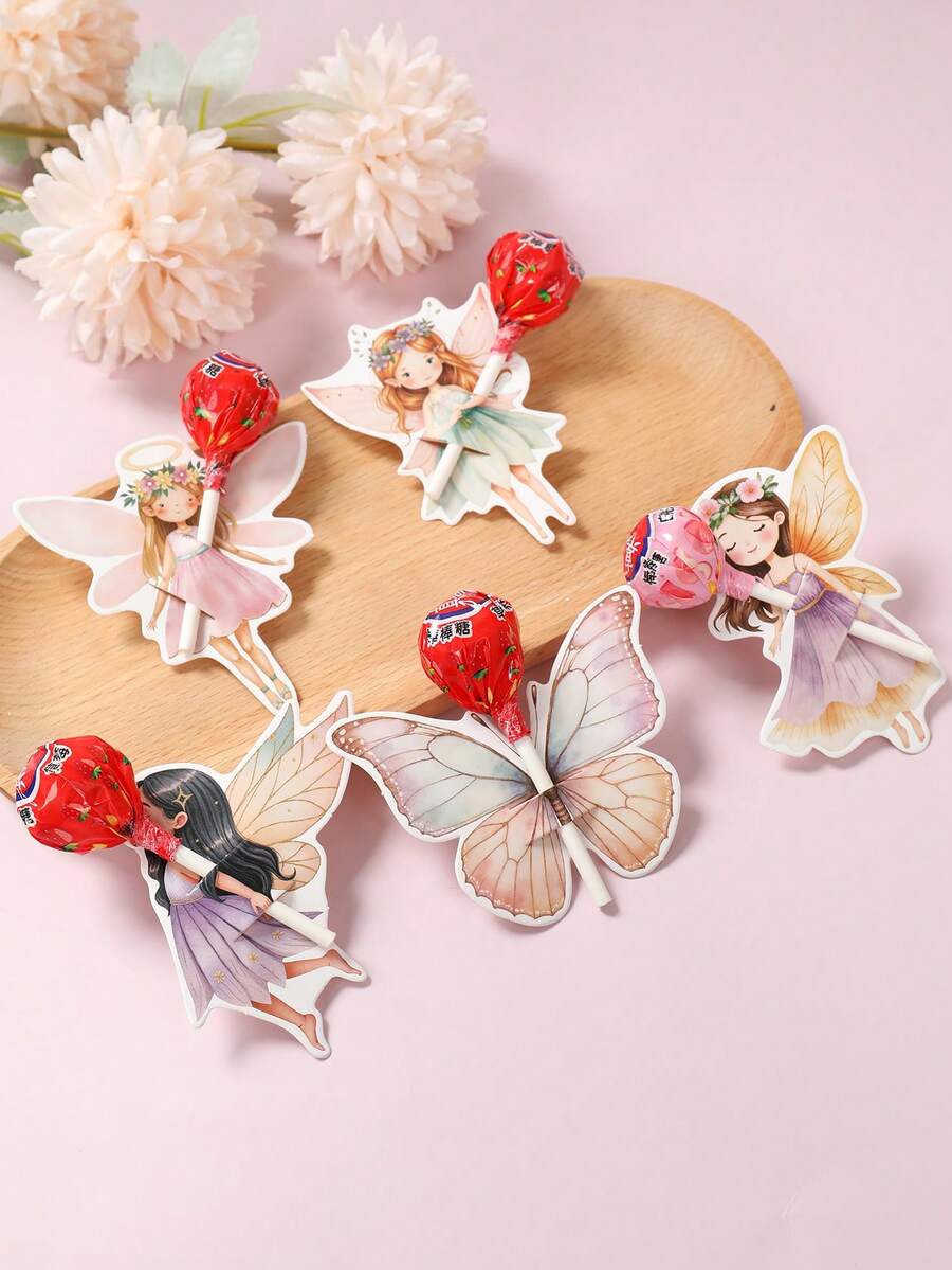 48pcs Flower Fairy Theme Lollipop Paper Jam, Flower Fairy Pattern Lollipop Paper Packaging Card Bag, Birthday Gifts Packaging Cards, Happy Birthday Gifts Bag, Packaging Gifts, Birthday Party Gifts, Baby Shower, Wedding,Gift Label Sticker Cards, Birthday Decor