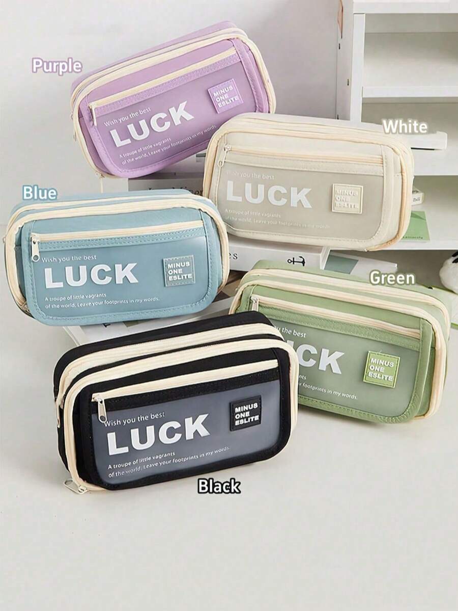 Wish Luck Pencil Bag Pen Case Flip Cover Frosted Front Multi Pocket Storage Pouch For Stationery School,Back To School,School Supplies