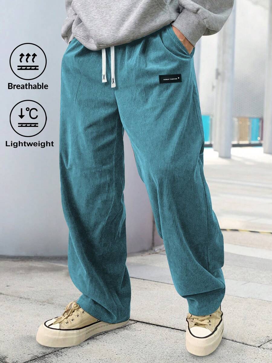 Men's Retro Loose Corduroy Casual Pants With Slant Pockets - Breathable Straight-Leg Drawstring Waist Sweatpants, Suitable For City Walks And Outdoor Activities