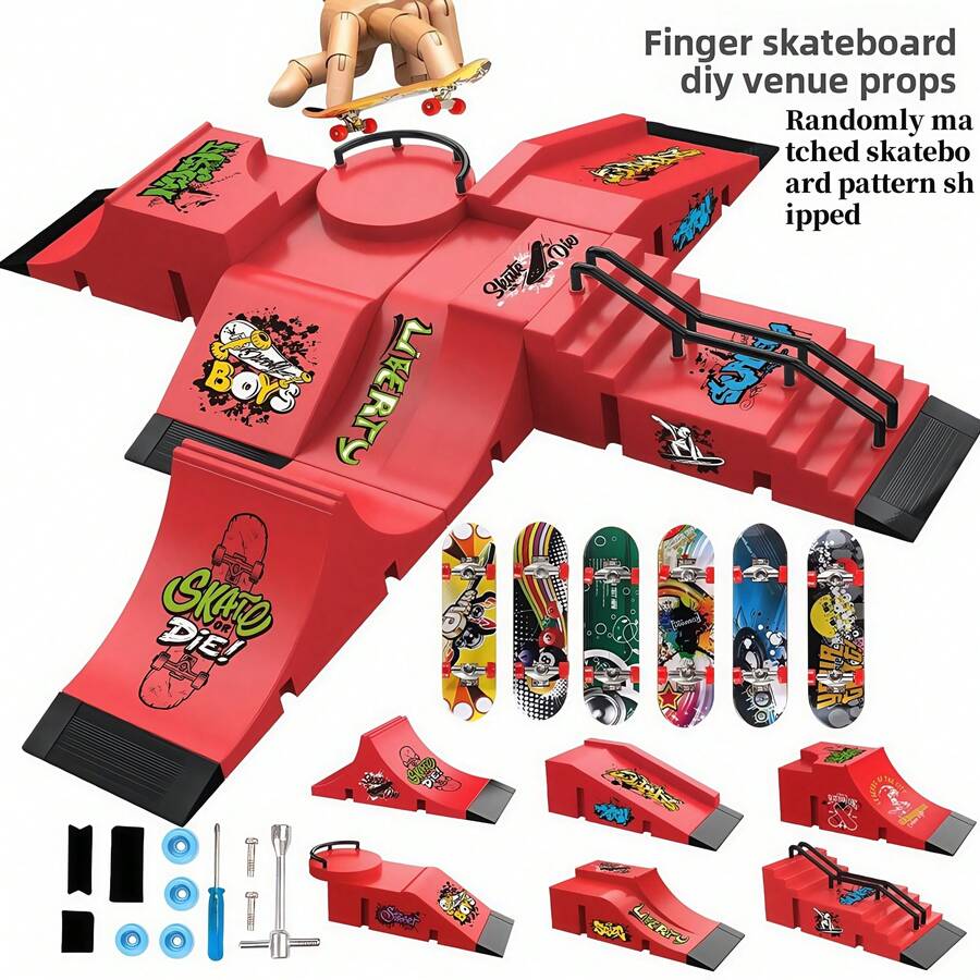 6-In-1 Fingerboard Ramp Set, Including Halfpipe Ramp, Fingerboard Skateboard, Finger Skating Training Props, Interactive Freestyle Skateboarding Game, Random Color Skateboard Pattern And Wheel Accessories