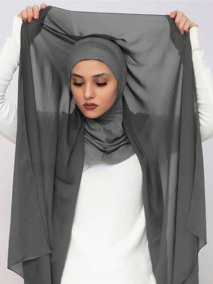 1set Women Classic Casual Instant Chiffon Hijab, Solid Scarf, Solid Color Soft & Breathable Modal Material, Versatile Neck Wrap/Head Scarf Combo, Suitable For Everyday Wear For Dress