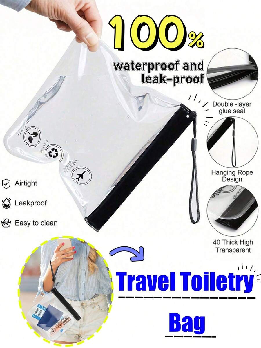 1/2/3pcs Clear Travel Toiletry Bag, Leak-Proof Airport Liquids Travel Bag With Hanging Rope,Airport Security Liquids Bags, Reusable Quart Size Travel Bag,Travel Accessories Makeup Bags, Waterproof Wash Bags Travel Essentials Vacation Summer Holiday Back To School