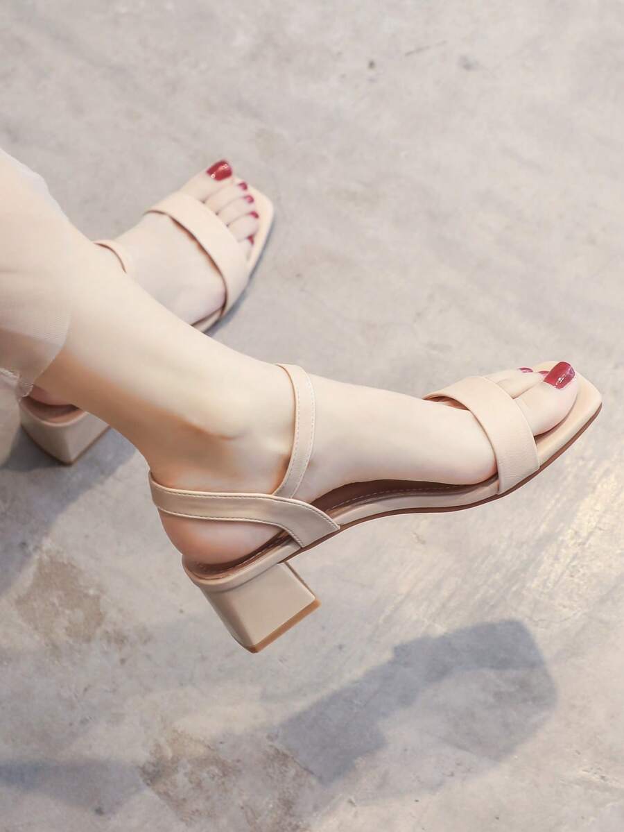 Square Toe Block Heel Mid-Heel Sandals For Women, Strap Black High Heel Sandals, Versatile Commute/Work Sandals, Crossed Strap Strap Sandals In Apricot And Khaki, Versatile High Heel Sandals