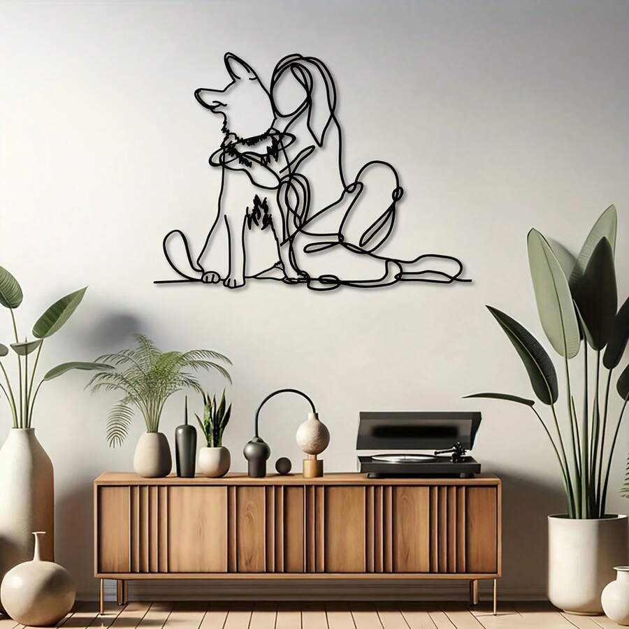 1pc German Shepherd Line Art Metal Wall Decor – Modern Woman And Dog Sculpture – One-Piece Minimalist Pet Wall Art For Indoor Or Outdoor Use – Perfect Gift For Dog Lovers
