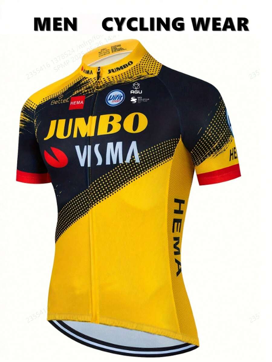 Jumbo Visma Men's Summer Cycling Short Sleeve Zip-Up Lightweight Cycling Jersey, Suitable For Triathlon And Road Cycling, With Pockets, Yellow And Black Color, Outdoor Sportswear, Energetic Top | Vibrant Graphic Top | Zip-Up Jersey