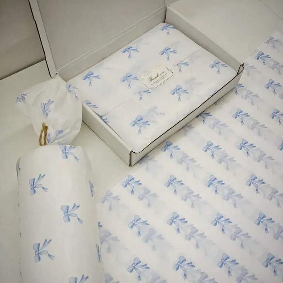 Blue/Pink Bow Pattern Thin Paper, 50*35cm, Thin Moisture-Proof Wrapping Paper, Suitable For Gift Packaging, Clothing Packaging, Fragile Item Protection, Birthday Decoration, Valentine's Day, Mother's Day, Christmas Gifts, Decorative Packaging, Elegant Gift Wrapping Paper, Bouquet Decoration Tissue Paper