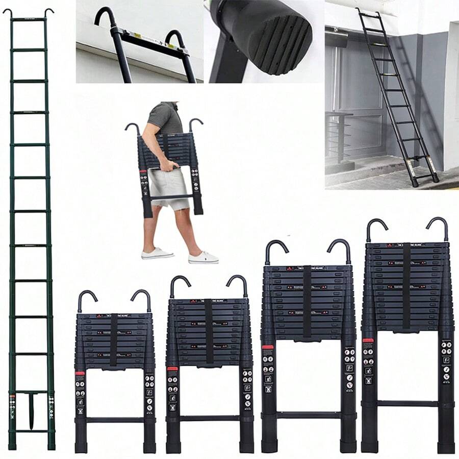 Vandise 3.2-6.2m Heavy Duty Aluminum Telescoping Ladder 150kg/330lb Max Load Capacity - Detachable Anti-Slip Hooks & Rubber Feet - Portable Extension Attic Loft Roof Ladder For Home Warehouse Industrial Use - Adjustable Folding Telescopic Stair Ladder With Locking System - ANSI Certified Durable Construction Ladder For Painting Cleaning Maintenance