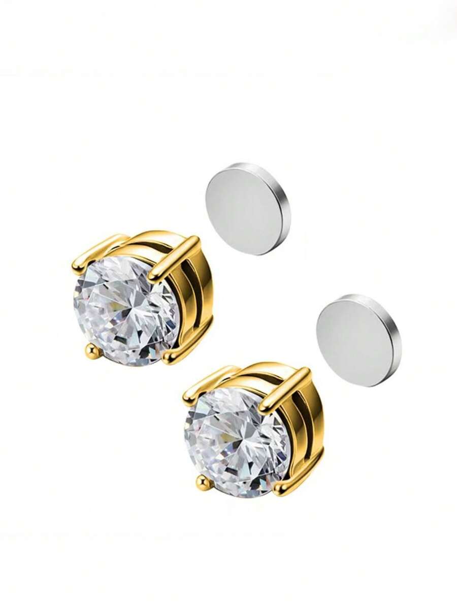 4pcs Stainless Steel Earring Set, 6mm & 8mm Size Gold Color Stud Earrings For Men & Women, Non-Piercing Clip-On Earrings, Versatile Daily Wear Earrings For Non-Pierced Ears