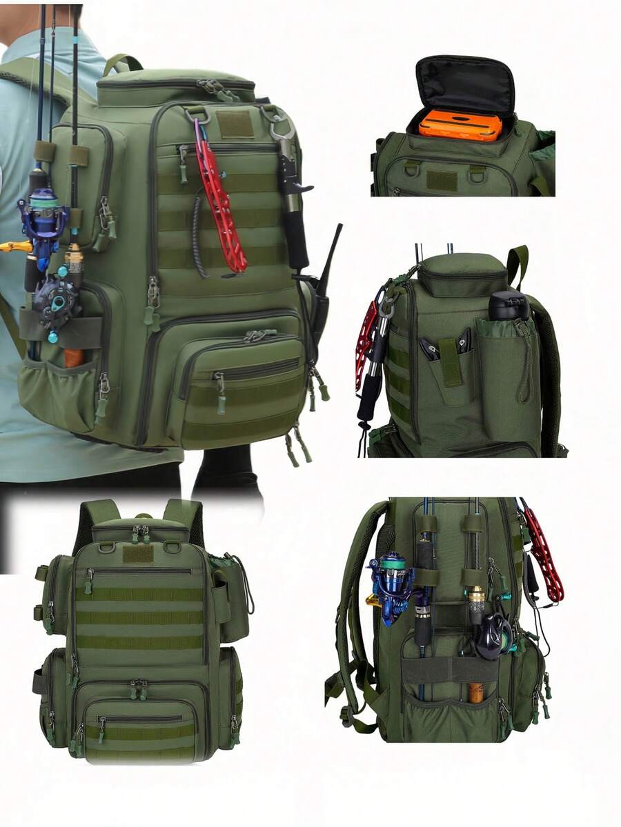 Fishing Backpack With Fishing Rod Holder, Women's Fishing Bag With Water Cup Bag, Fishing Gear Storage Bag, Fishing Gear Box Backpack, Fishing Gear Bag, Camouflage Tactical Backpack, Mountaineering Bag, Camping Bag, Men's Gifts, Women's Gifts
