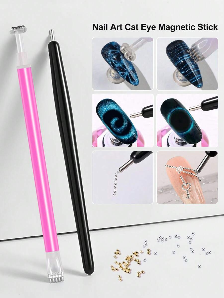 Beautizon Nailartlab 1pc/2pcs/4pcs Nail Art Magnet Tools And Gold And Silver Steel Beads Jewelry Set, Cat's Eye Gel Magnetic Stick Magnetic Pen / Steel Bead Magnetic Pen / Gold And Silver Nail Enhancement Small Steel Beads, DIY Artistic Designs Printing Patterns, 5D Effect UV Cat's Eye Gel Magnet Tools And Jewelry Accessories,Nail Supplies,Nail Tools,Nail Art Tools,Back To School,Nails,Nail Tools For Press On Nails,Manicure Pedicure Tools