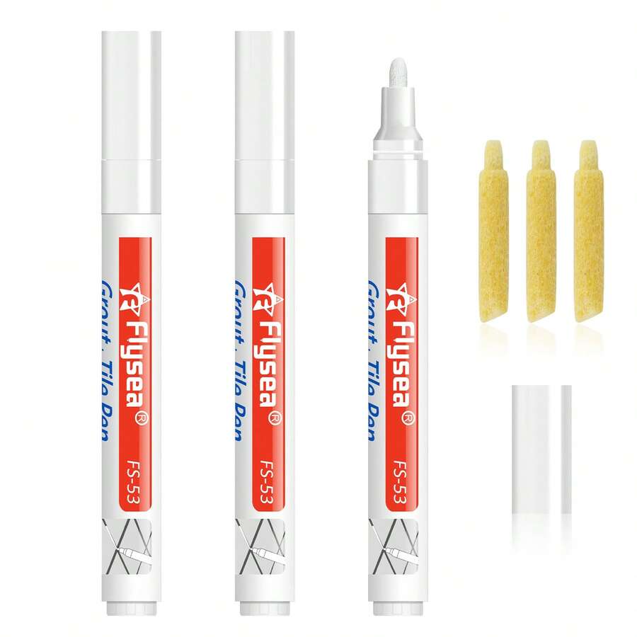 3PCS Grout Pen White Tile Paint Marker Waterproof Grout Paint, Water Based Tile Marker Repair Pens Professional For Bathroom, Kitchen, Parlor, Bedroom,Balcony Wall And Floor Color Restore