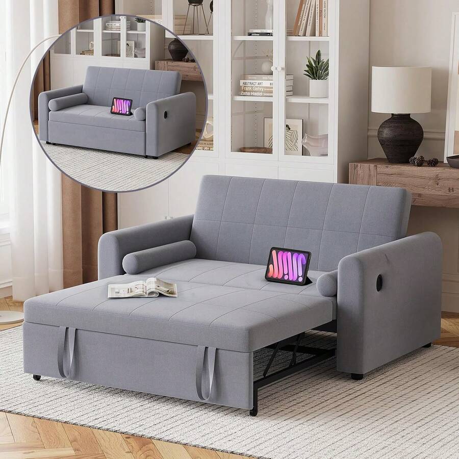 2 Seater Sofa Bed, 3-In-1 Convertible Fabric Pull Out Sleeper Sofa With 3-Position Adjustable Backrest, Side Pockets For Living Room, Guest Room, Dark Grey