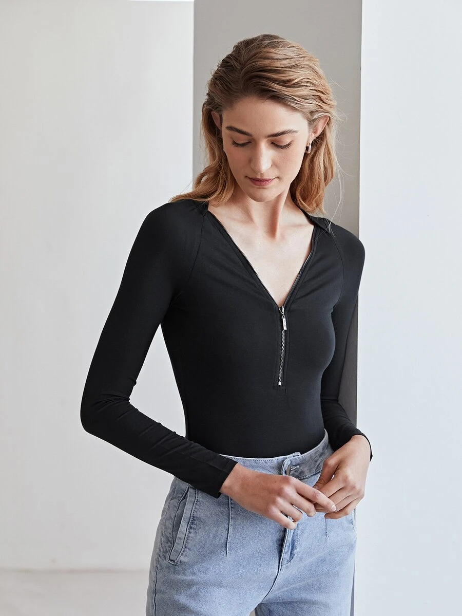 MOTF PREMIUM MODAL HALF PLACKET BODYSUIT