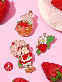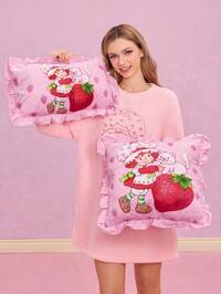 FansphereStrawberry Shortcake X SHEIN 1 Pc Cartoon Figure Graphic PU Leather Portable Travel Jewelry Storage Box, With 3 Necklace Hooks, Ring Compartment And Other Storage Compartments, Suitable For Home Organization, Travel, Commuting, For Women & Teens, Strawberry, Lace, Pastoral,Gift Ideas